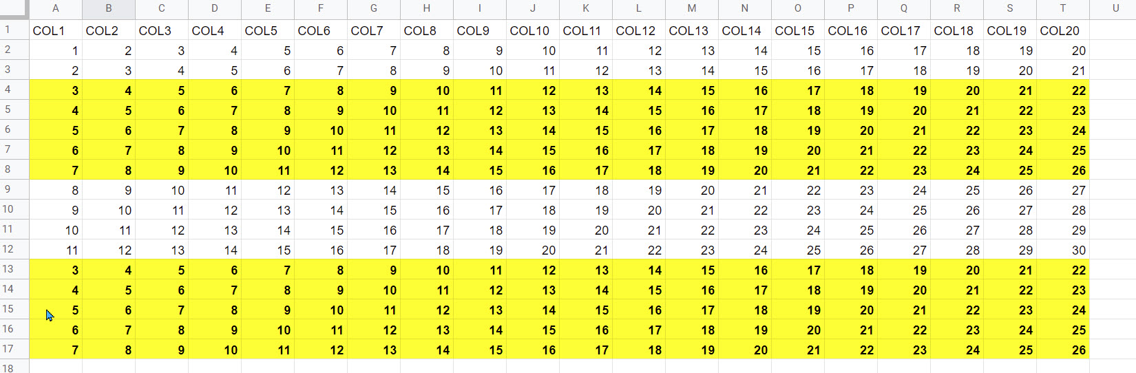 注意事项-为了保持文件小,工作表中的大多数行都是故意删除的。最后一行可能并不总是相同的数字,所以即使没有数据,脚本也必须知道最后一行是哪一行。