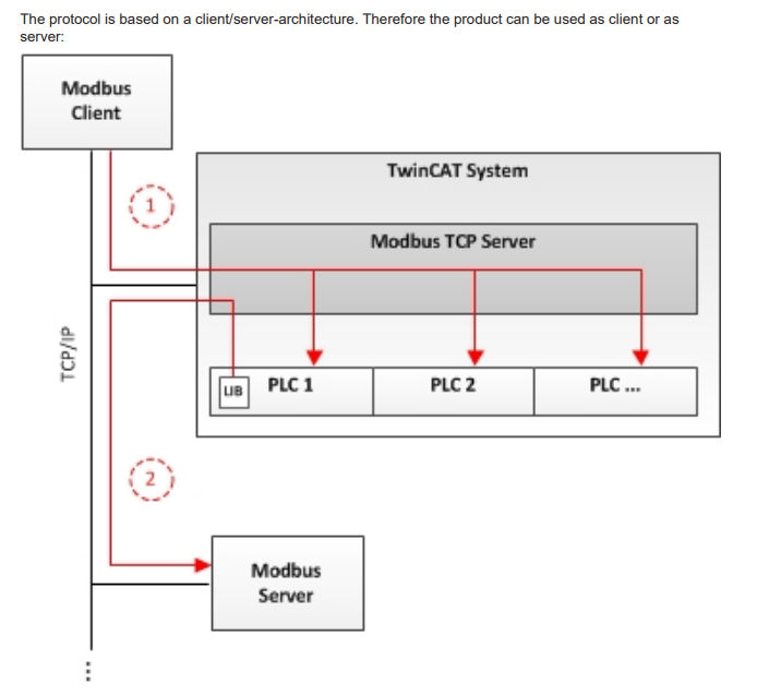 所以你的部分问题可能在这里的陈述中。使用TcModbusSrvCfg.exe设置TwinCat PC Modbus TCP服务器,但手册中提供的示例代码是充当Modbus客户端的TwinCat程序。从你的问题上看,我不完全清楚你想要达到什么目的。