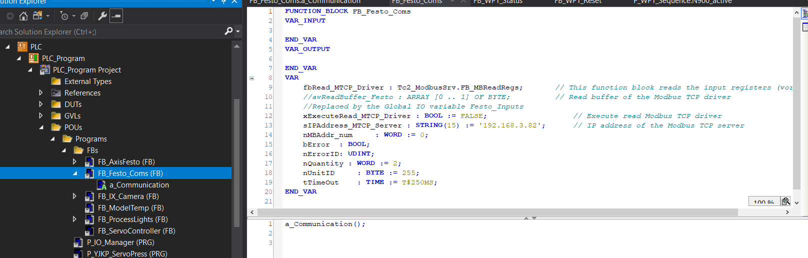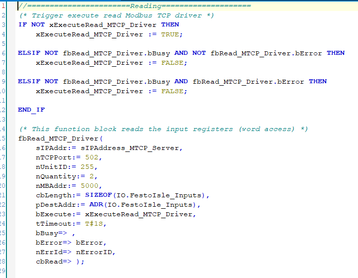 如果您想比较变量值,我使用这个用于modbus通信的示例FB从Modbus Festo主版读取IO模块。