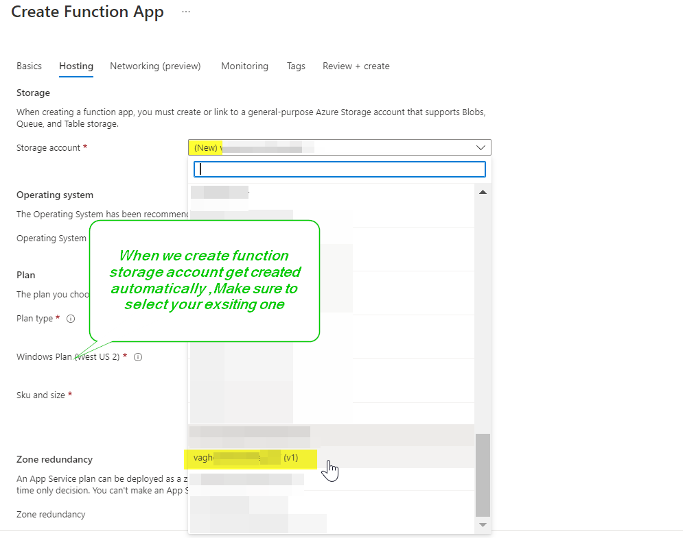 确保为这两个函数选择一个存储帐户: