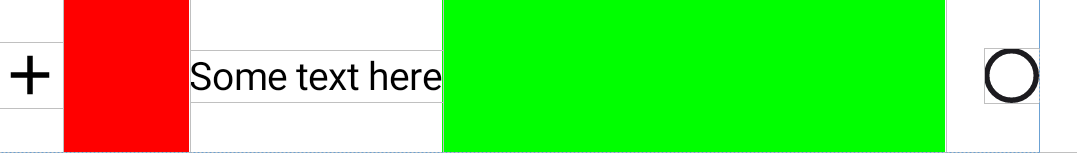 测量图标、文本和单选按钮后的剩余空间分配为红色空格20%,绿色空间80%,因为这是它们在总重量中所占的份额(1/5和4/5)。