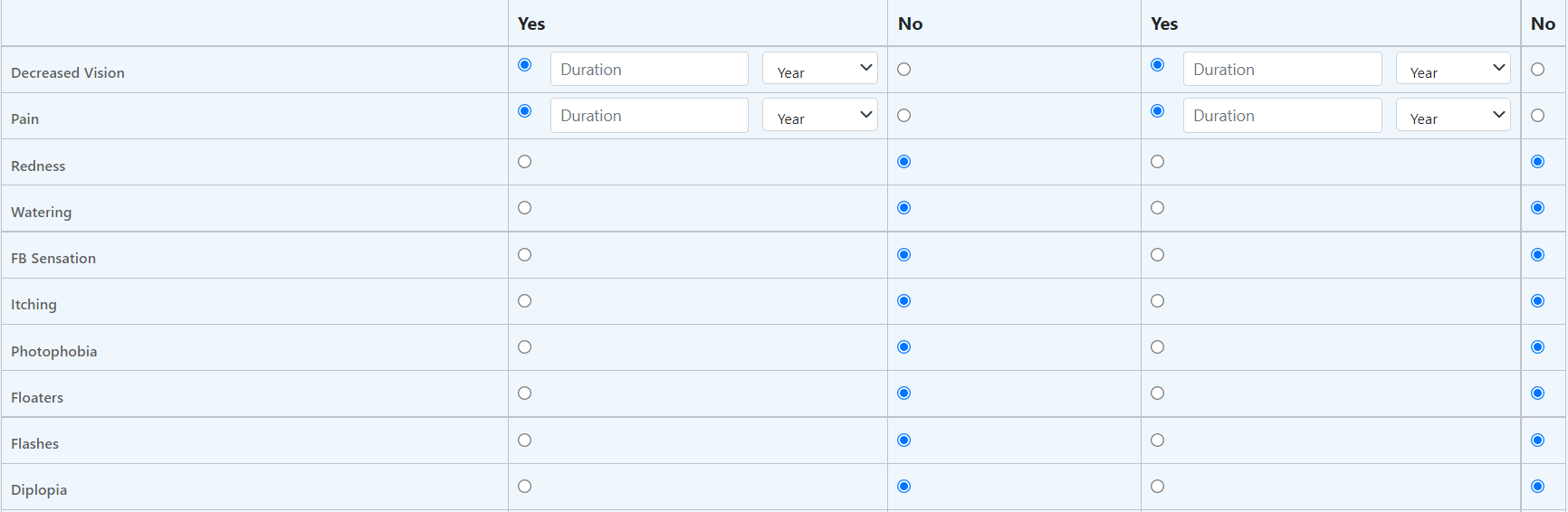 我正在创建一个医疗表格应用程序,记录病人的信息。在这里,我有一些特定情况的持续时间,如疼痛,发红等等。