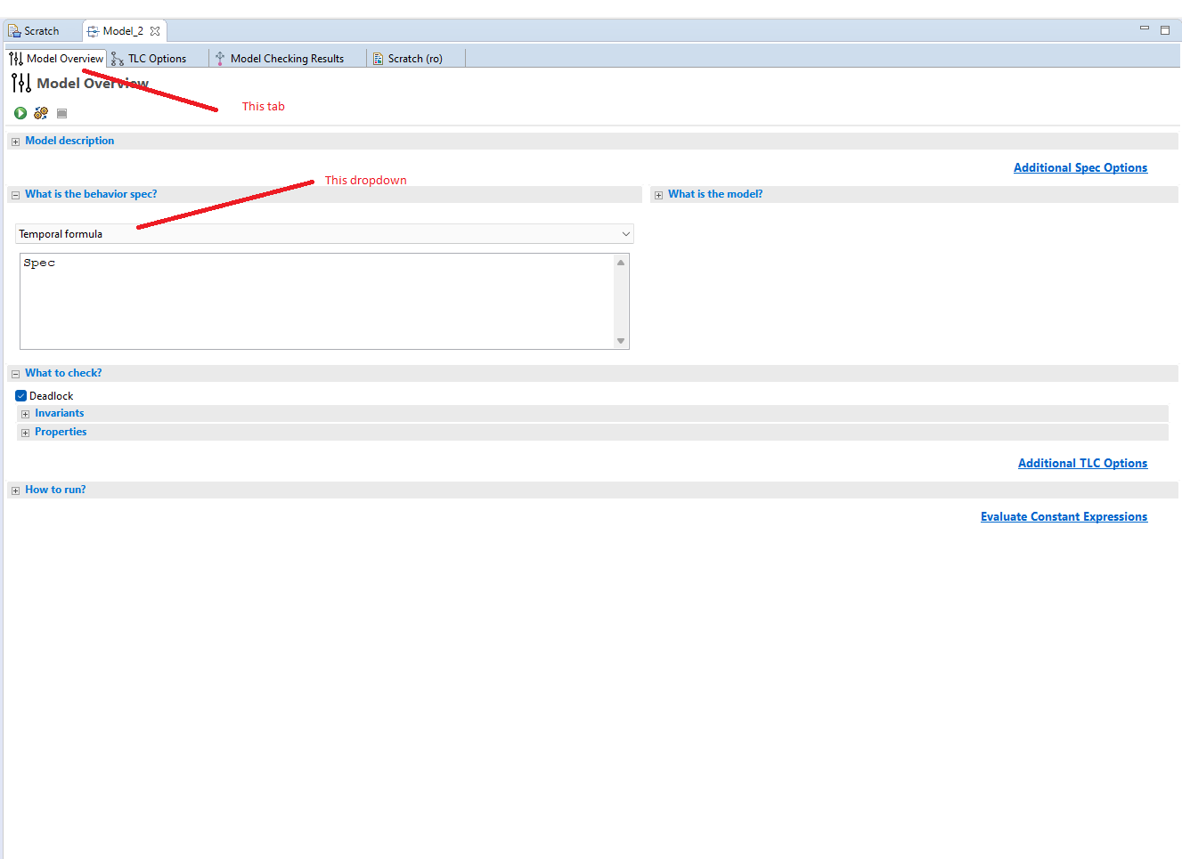 什么是“时间公式”?它在示范菜单的哪里?或者,我如何使用VSCode TLA+插件来运行它呢?我觉得我遗漏了一些实际运行/验证该规范所需的细节。
