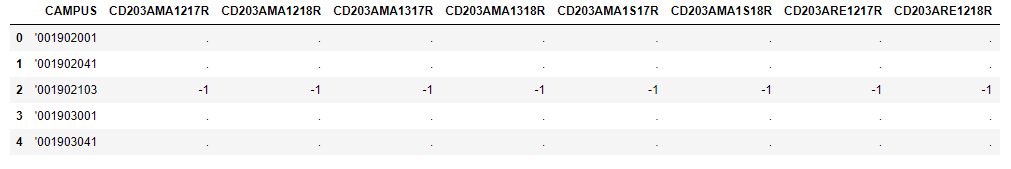 最终结果应该是一个包含列标题和校园编号的新数据或列表。细胞内的值是什么并不重要,只要它不是“。