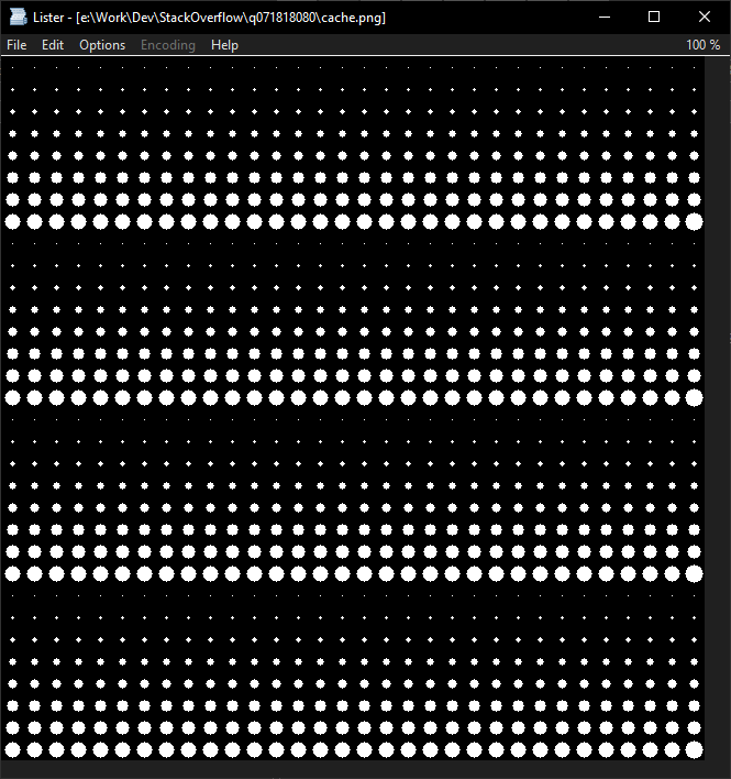 但是你声称你得到的结果是:~每一张32x32图像100毫秒(一张640×640圆圈),对我来说没有任何意义(因为OpenCV也是快速的,1024圈不应该是什么大问题),所以我创建了一个程序来说服自己。