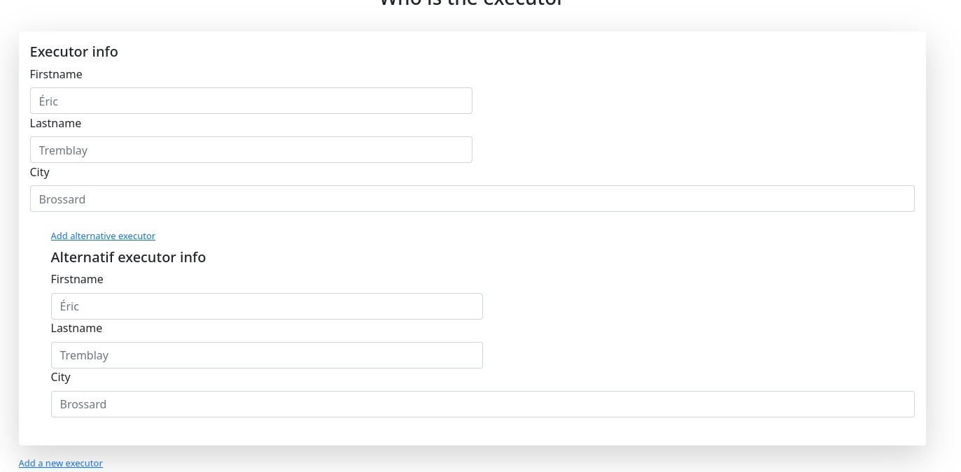 单击addExecutor上的事件允许添加另一组executorSection。AlternativeExecutor部分包含在executorSection中,但它是隐藏的。