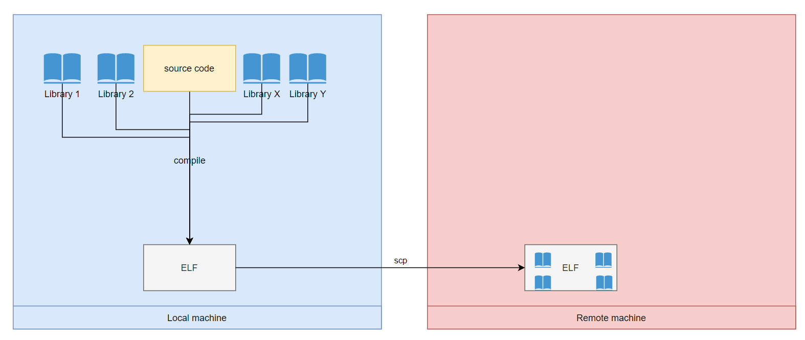问题是,即使我用所有所需的库构建ELF二进制文件,当我试图在远程机器上执行它时,也会得到以下错误: