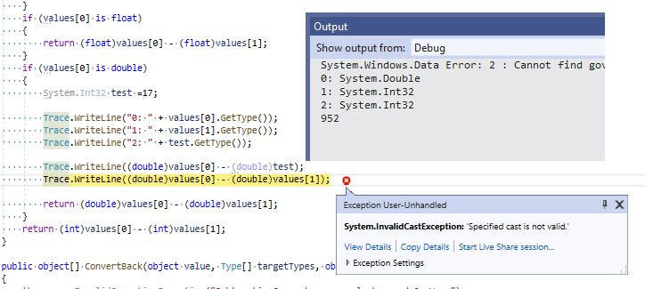 我使用的是WPF,我有一个转换器,用于多绑定的子字符串。在这个转换器中,我使用简单的do值-值1,但是在完成此转换之前,我需要将数据转换为相同的数据类型,如下所示: