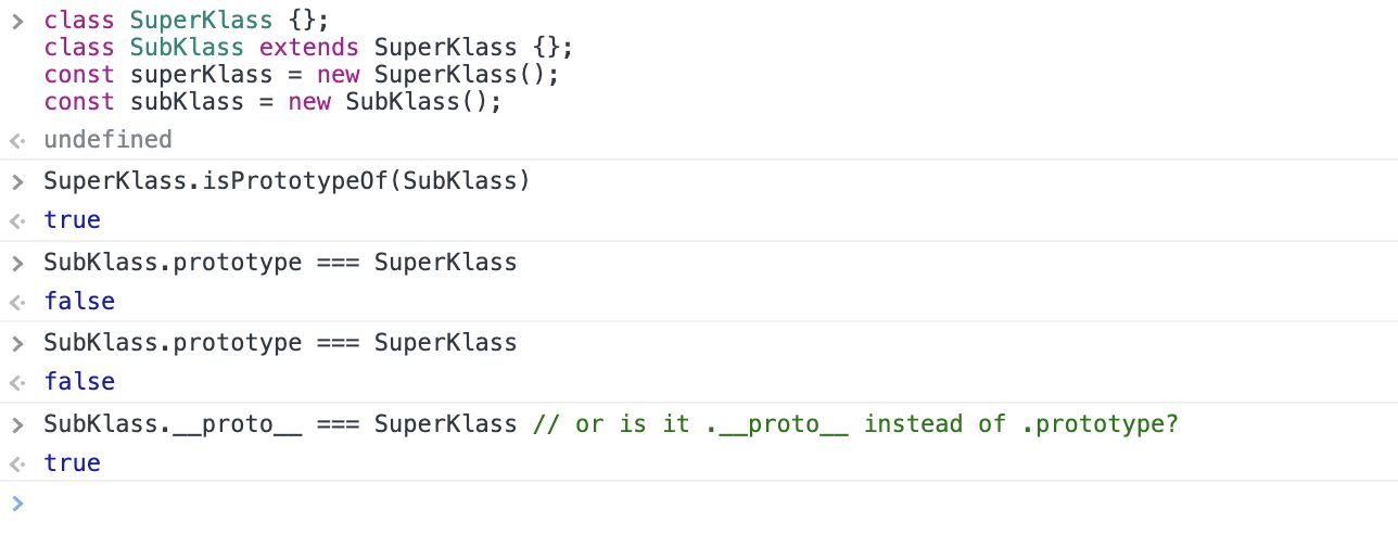 console.log(SuperKlass.isPrototypeOf(SubKlass));