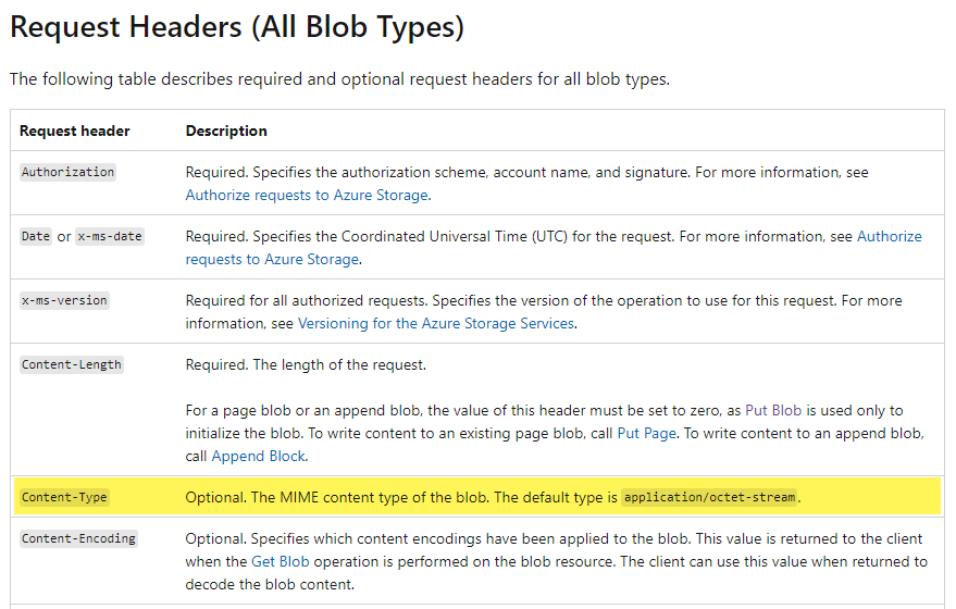 如果这不起作用,请尝试另一个列出的,它看起来确实是正确的使用. x-ms-blob-content-type