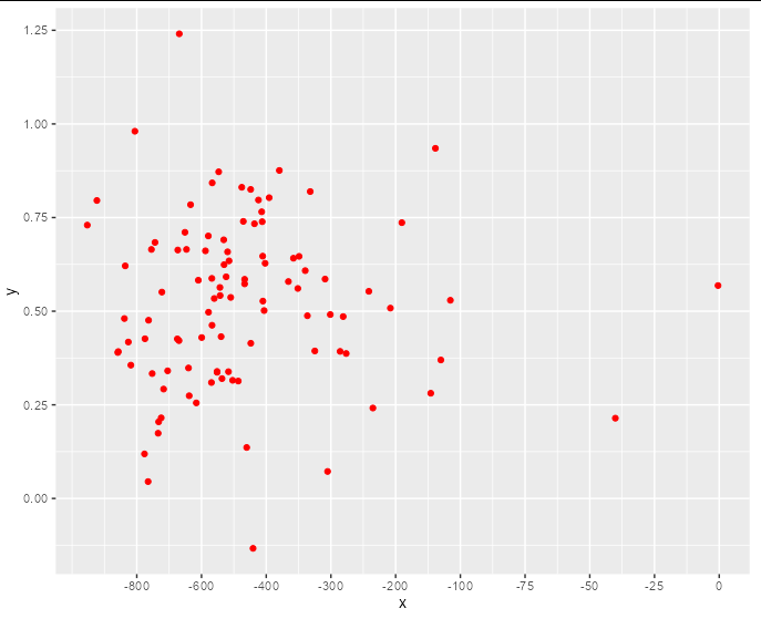 ddf=data.frame( x=rnorm(100,mean=-500,sd=200), y=rnorm(100,mean=0.5,sd=0.2) )