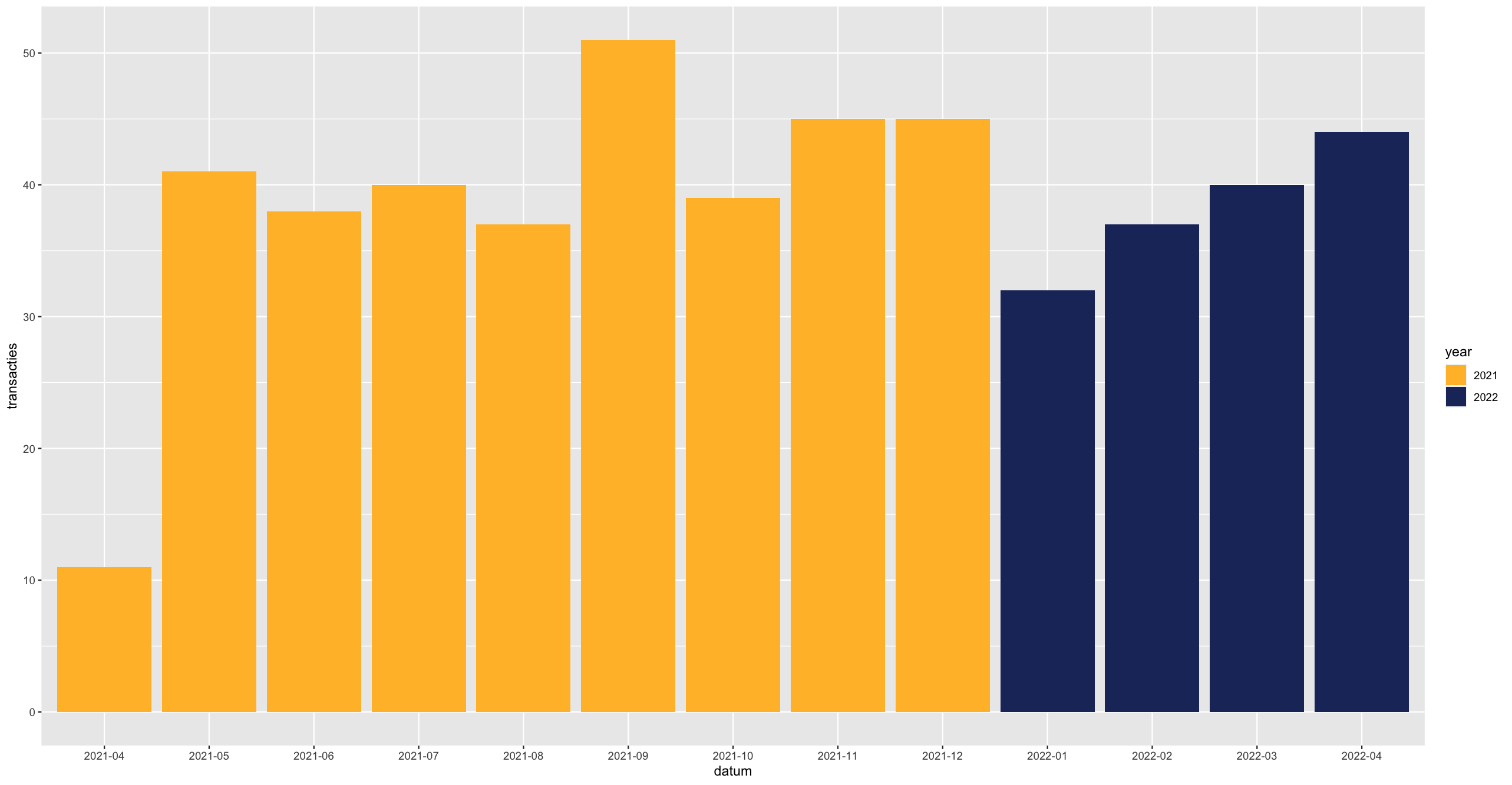 ggplot(aes(x= datum, y = transacties, fill = year)) +