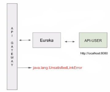 当试图通过API访问其中一个微服务时,会引发java.lang.UnsatisfiedLinkError异常。例如,http://localhost:8082/API-USER/users/status/ok将抛出此异常。
