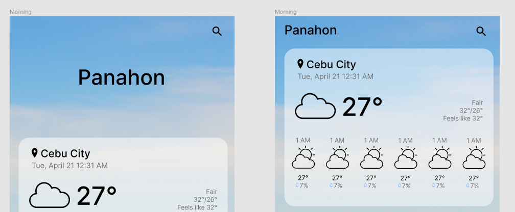 我的目标是遵循我设计的东西(受三星天气的启发),但是当你刚开始学习的时候,实现代码是很困难的。展开时,标题应居中,折叠时应留在左上角。