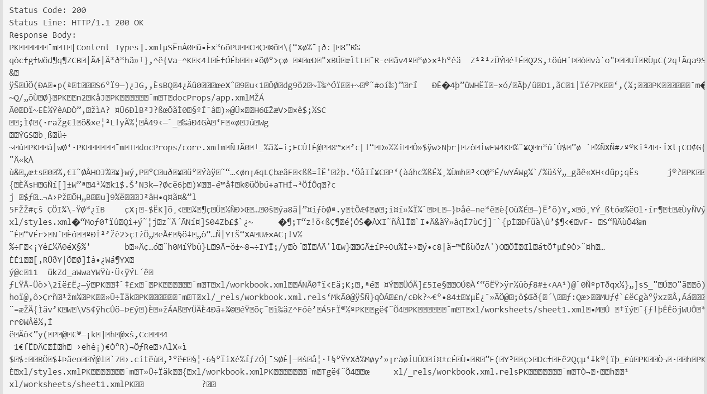 我有一个API,它以显示在附件图像中的格式给我响应。我尝试通过inputstreamresponse读取它,但这给我带来了文件损坏的错误。