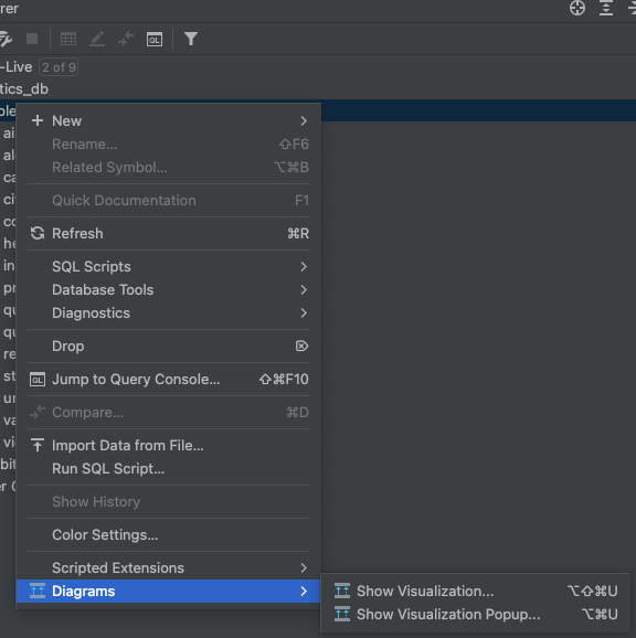 我使用的是DataGrip v 2021.3.4 of JetBrains。我连接到托管在AWS中的MariaDB。数据库有28个表,尽管数据库资源管理器中只显示了15个表(15)。