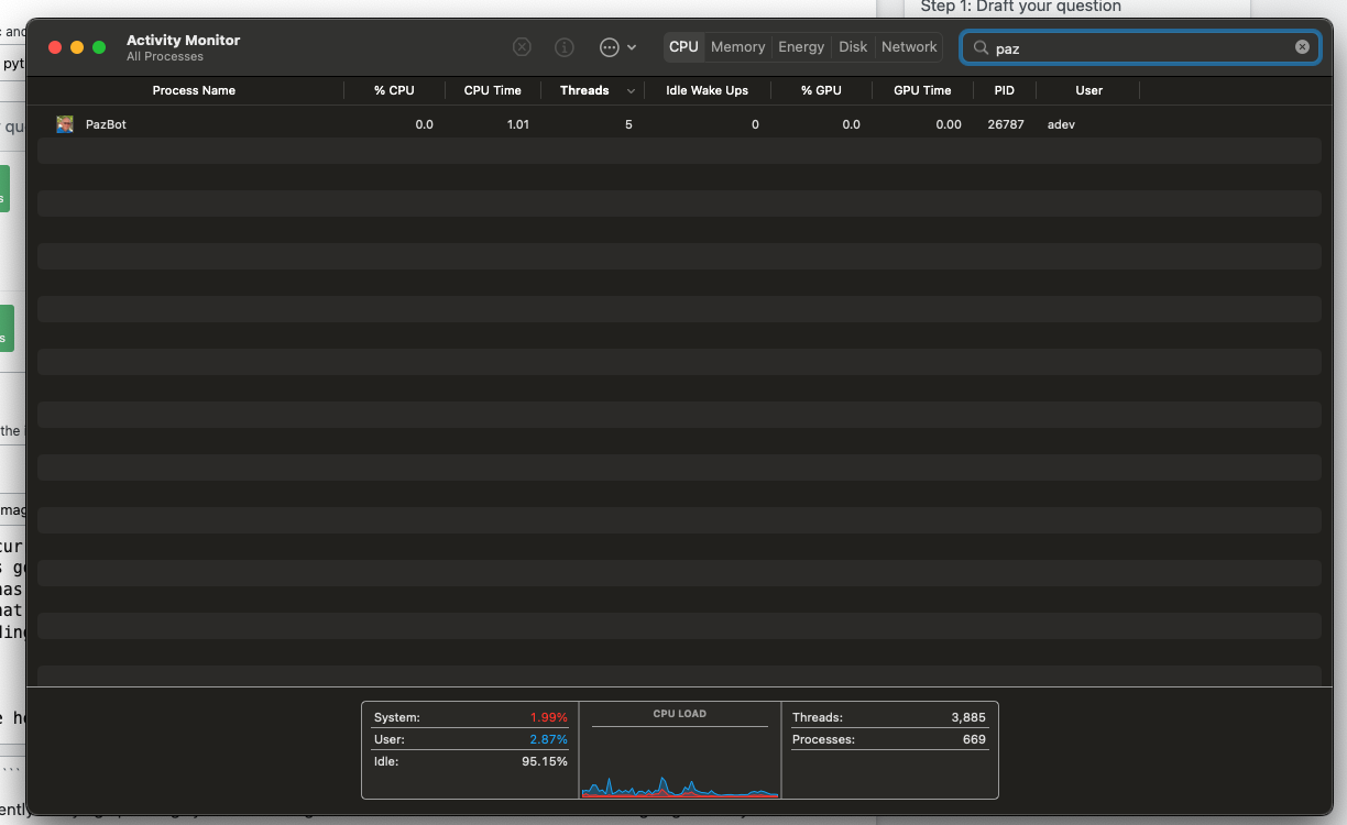 我目前正在大学学习操作系统。这让我更清楚我的macOS的活动监视器中发生了什么。昨天,我编写了一个简单的python程序,它有一个3窗口GUI (使用pysimplegui),当我在Activity中检查它时,我发现它有时有4-7个线程。我根本没有使用线程,而且,根据我所了解的,一个线程程序应该只显示一个线程。