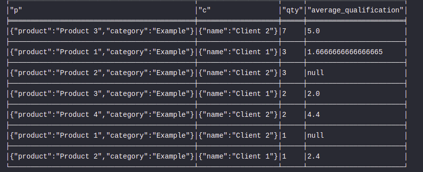 ORDER BY qty DESC但是,查询为每个客户端的每个average_qualification返回一行(如下所示):