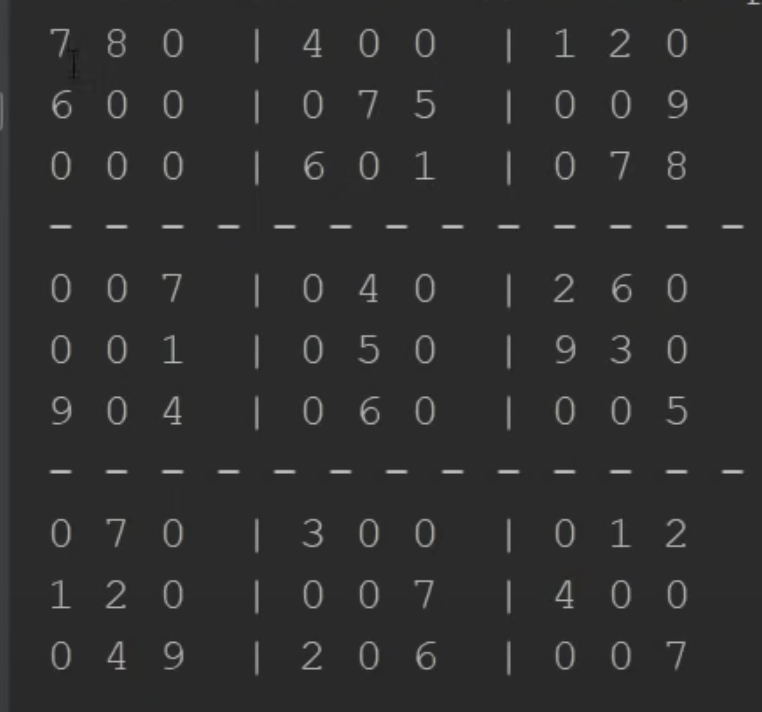sudoku.print_board(sudoku.board)下面是我从上面的代码中得到的输出: