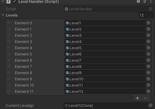 目前,游戏的状态是我们在级别处理程序脚本中创建级别并将其添加到级别列表中,然后加载用户的递增级别。