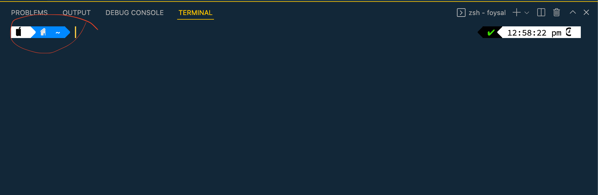 在我的iTerm2终端中,一切都很好,包括图标和字体。但是在我的VS代码终端中,图标看起来有点不对劲。它们是左右两边的一半。我已经在vs代码中设置了正确的终端字体。我使用的是"SourceCodePro+PowerLine+Awesome常规“字体。麦克·斯·蒙特里12.2.1