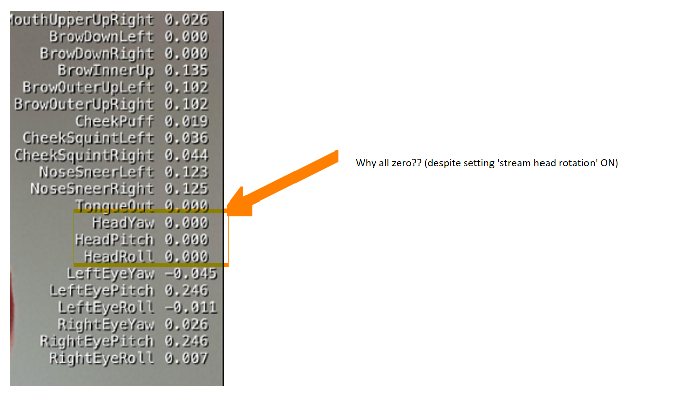 此时,在观看相机时,您可以看到HeadYaw、HeadPitch、HeadRoll的所有值都为零,没有什么好的理由!