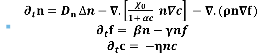 n[j,i] +=dt*(D*d21 -(np.dot(d14,d13) + xi(c[j,i])*d23 +gho*d22)*n[j,i]-np.dot((xi(c[j,i])*d13 + gho*d12),d11))