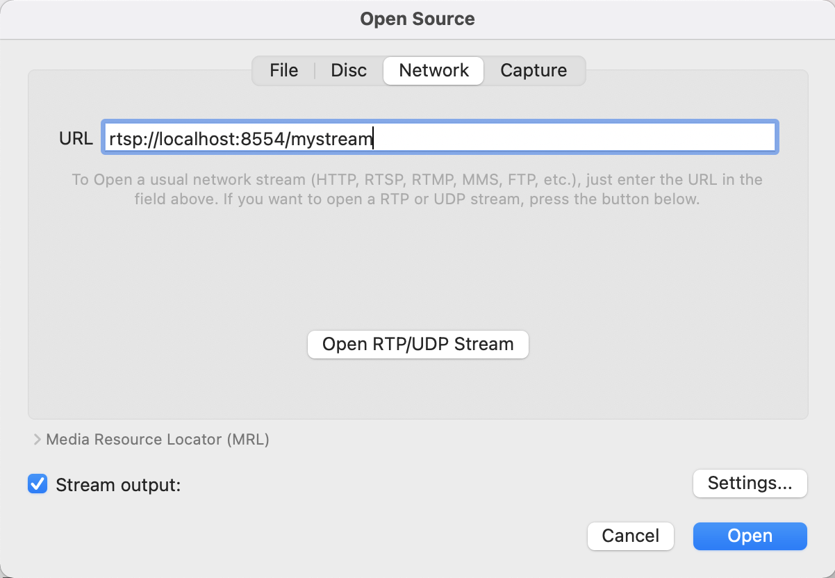 2022/05/29 19:13:19 INF [RTSP] [session 734209460] is reading from path 'mystream', 1 track with UDP