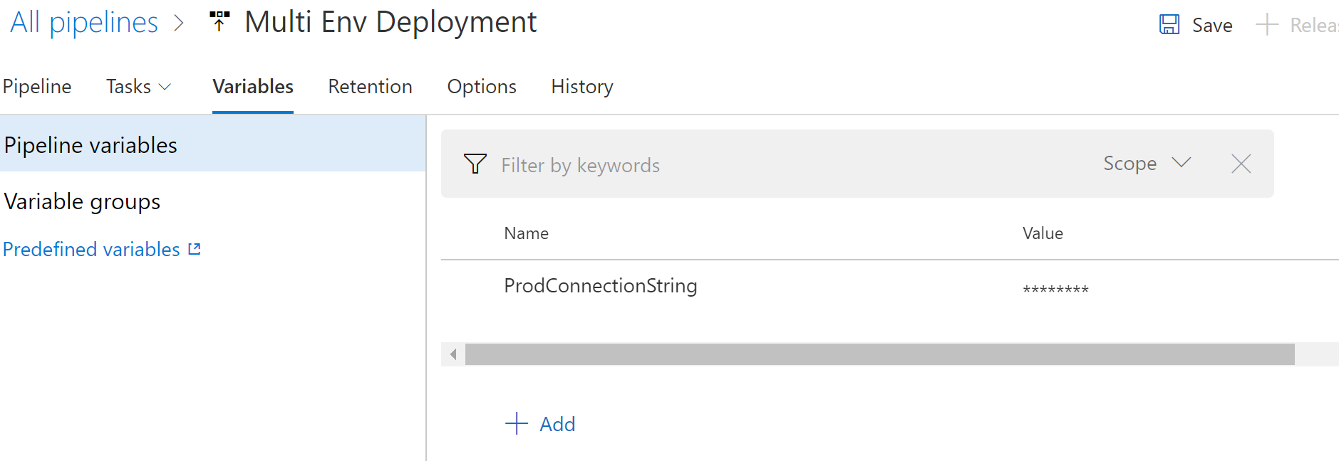 根据您的需要,您可以添加多个变量模板,有一个命名约定等,这取决于您的管道的复杂性。