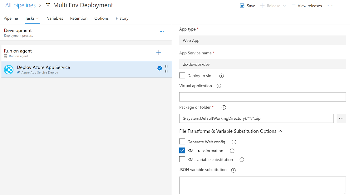 目前,我的管道可以成功地部署到特定的Azure订阅(Service ),并在变量中定义资源名称。