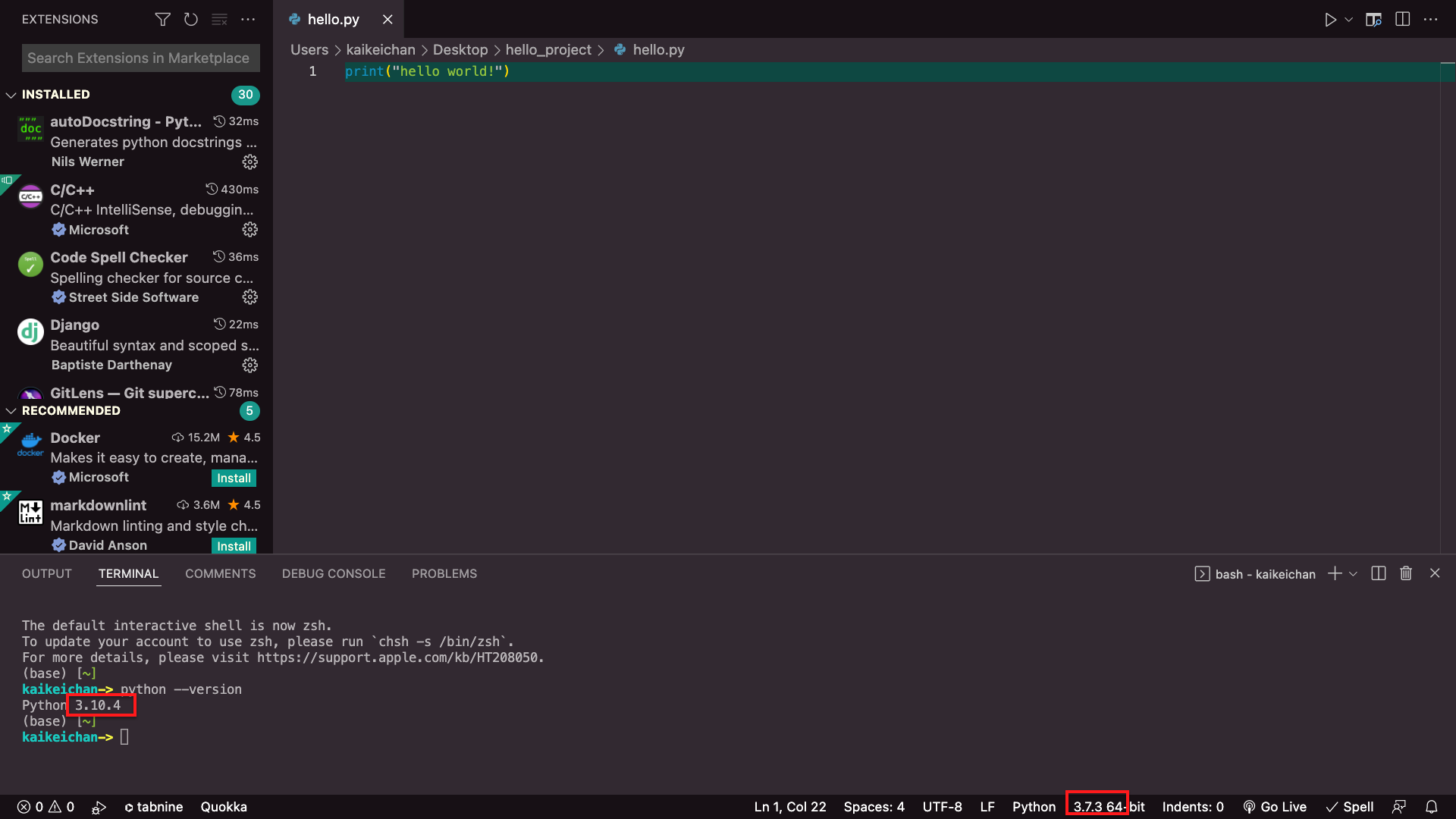如果您单击VSCode使用的解释器版本,您应该能够在整个设备中选择不同的版本。