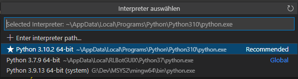 https://code.visualstudio.com/docs/python/environments#_work-with-python-interpreters