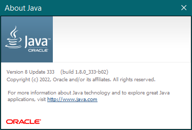 $ java -version java版本"1.8.0_333“ Java(TM) SE运行时环境(build 1.8.0_333-b02) Java HotSpot(TM) 64位服务器VM (构建25.333-b02,混合模式)