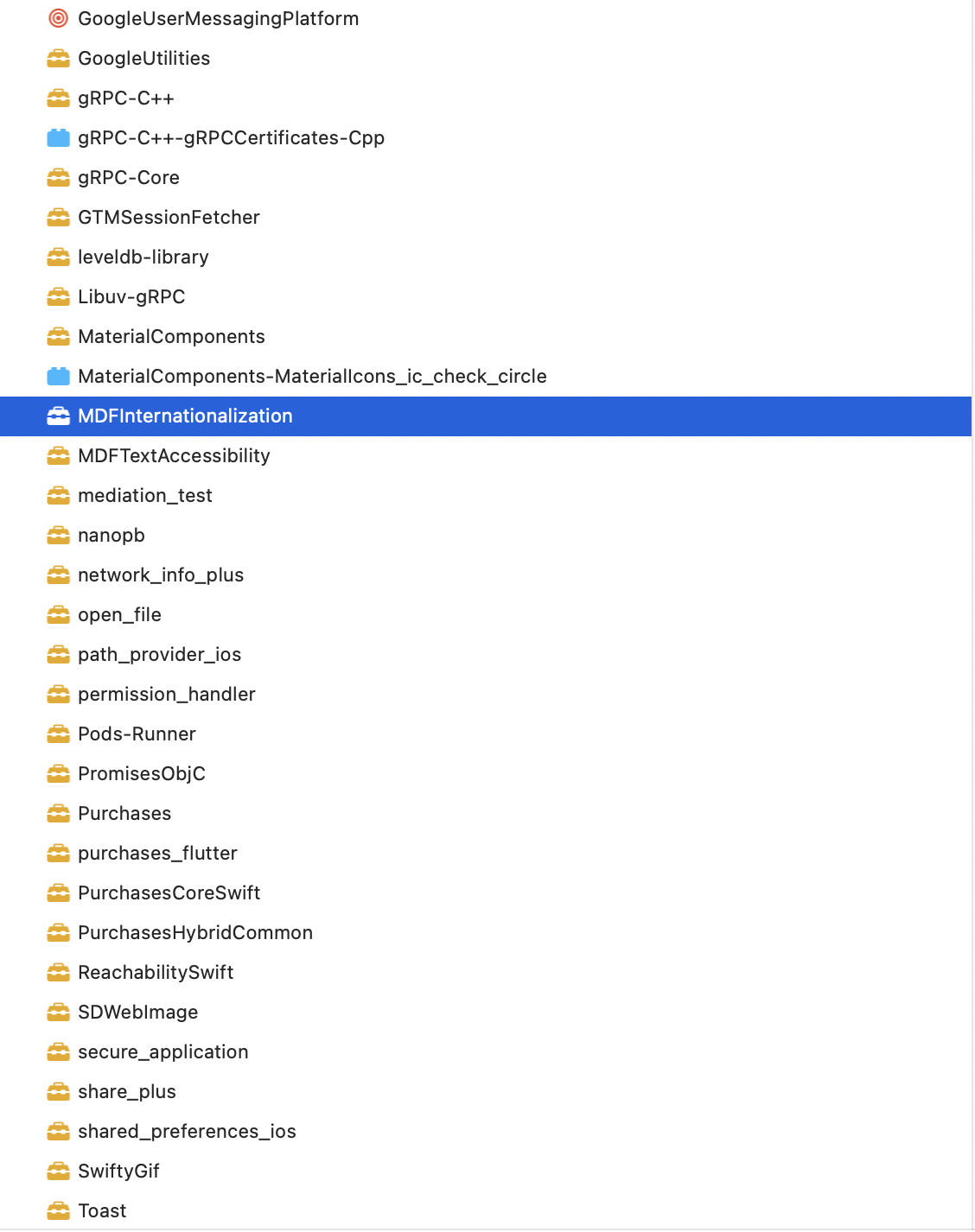 pod文件列表:(我认为这与MDFInternationalisation有关?)