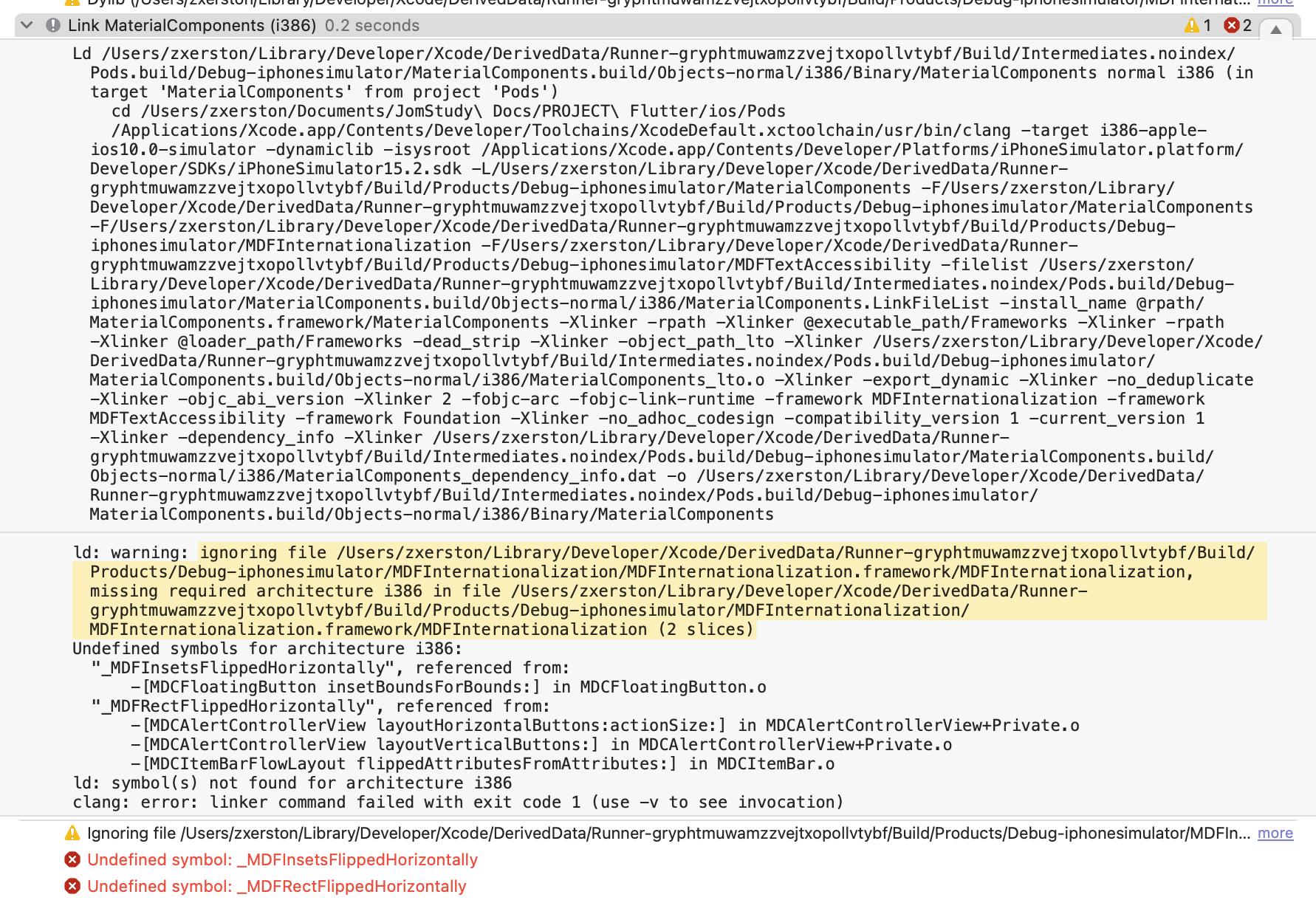 end我尝试过这个解决方案,https://github.com/material-components/material-components-ios/issues/10203,但是错误仍然存在。我还试着安装最新的xcode版本。