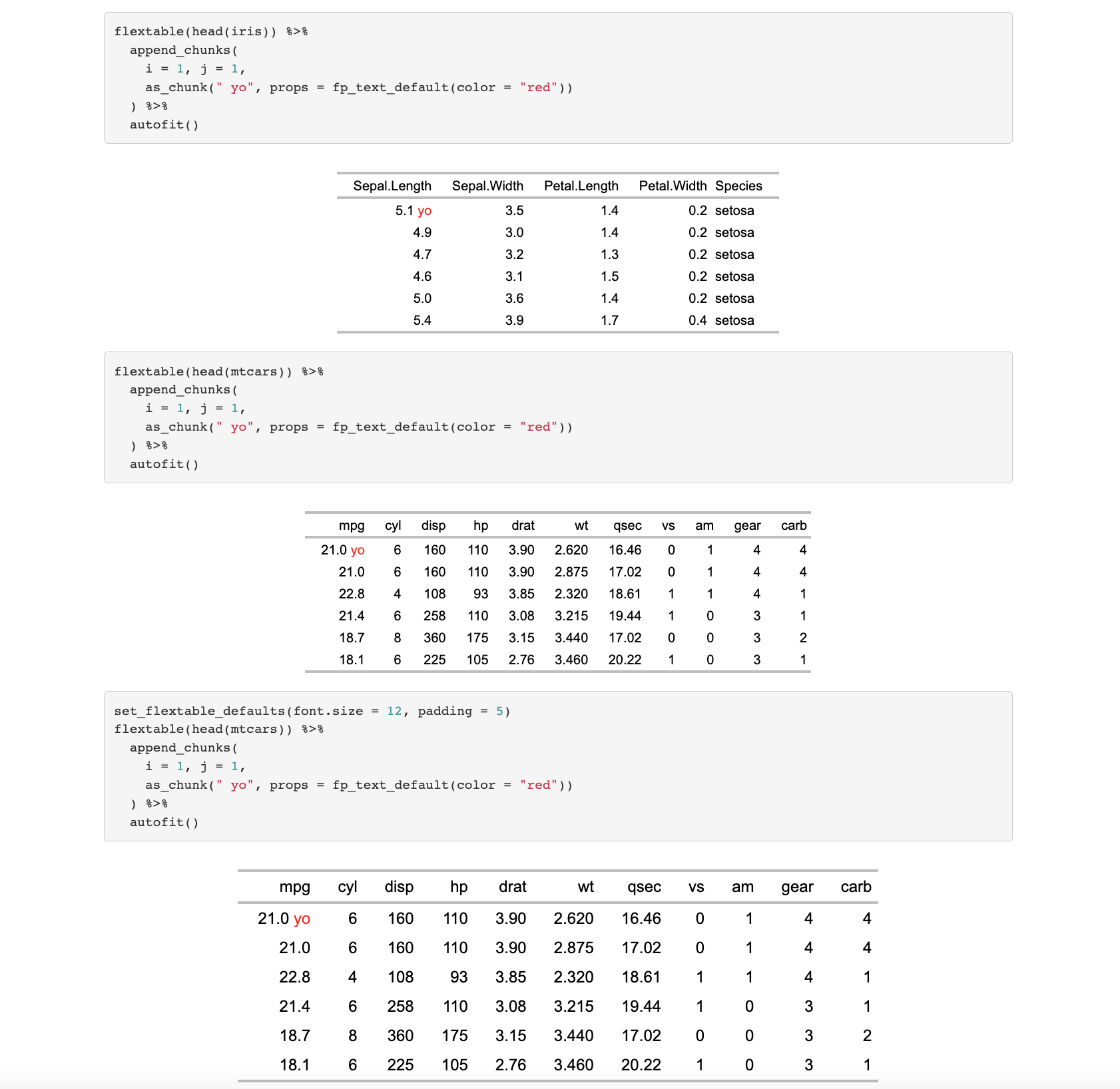 您可以使用set_flextable_defaults(),这样就不必一次又一次地调用fontsize()或其他一些函数(例如填充、颜色)。
