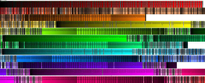 }从上面看,这显然将按正确的彩虹顺序对颜色进行排序。然而,一旦你引入更多如此相似的颜色,事情就会从上面的图像变得非常混乱。目前的排序算法主要是基于色调的排序,然后是RGB排序。我还有别的办法或者更多的方法来清理这件事吗?我唯一的要求是允许它使用List<Tuple<Color>>,例如下面这样的例子。