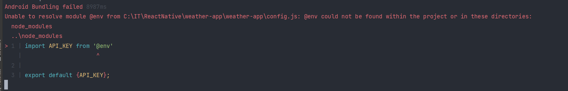 Unable to resolve module @env from C:\IT\ReactNative\weather-app\weather-app\config.js: @env could not be found within the project or in these directories:
