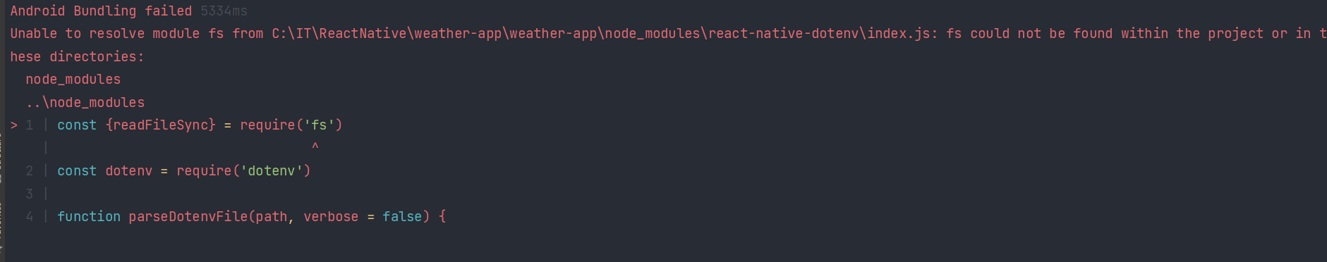 Unable to resolve module fs from C:\IT\ReactNative\weather-app\weather-app\node_modules\react-native-dotenv\index.js: fs could not be found within the project or in t