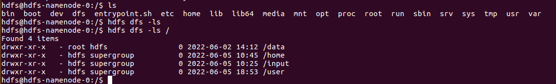 和hdfs@hdfs-namenode-0:/ $ hdfs dfs -ls /