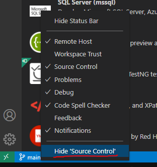 你不小心把它藏起来了吗?如果是这样,只需右键单击状态栏并选择“源代码管理”来启用它。