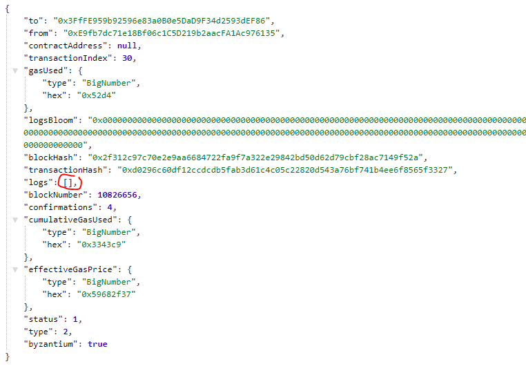 https://rinkeby.etherscan.io/tx/0xd0296c60df12ccdcdb5fab3d61c4c05c22820d543a76bf741b4ee6f8565f3327 I获得0条日志,事务成功