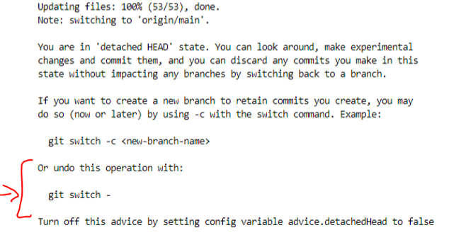 或分支,因为关联的消息提到:checkout: moving from <branch> to origin/main