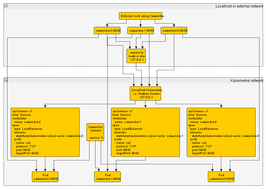我想在本地主机上使用Kubernetes构建一些测试环境(可以是Desktop )。.)。我想将我的客户端连接到本地主机K8s集群中的三个Cassandra实例。卡桑德拉是一个例子,它可以是相同的etcd,redis,.或者任何StatefulSet