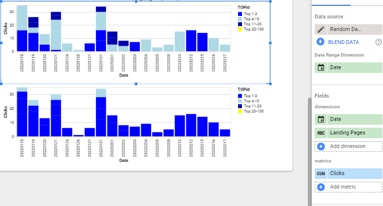 我有SEO数据,需要创建一个堆叠条形图与它。我有登陆页面(URL),我需要将它们分为4类。