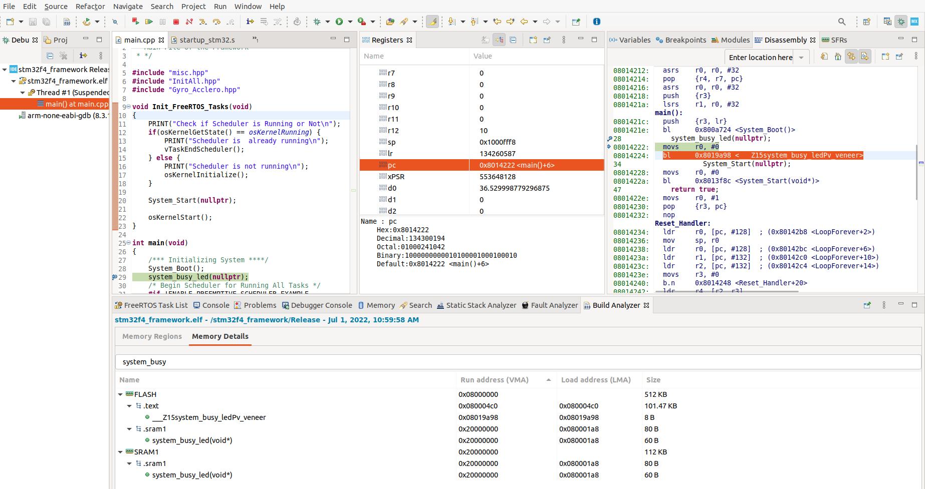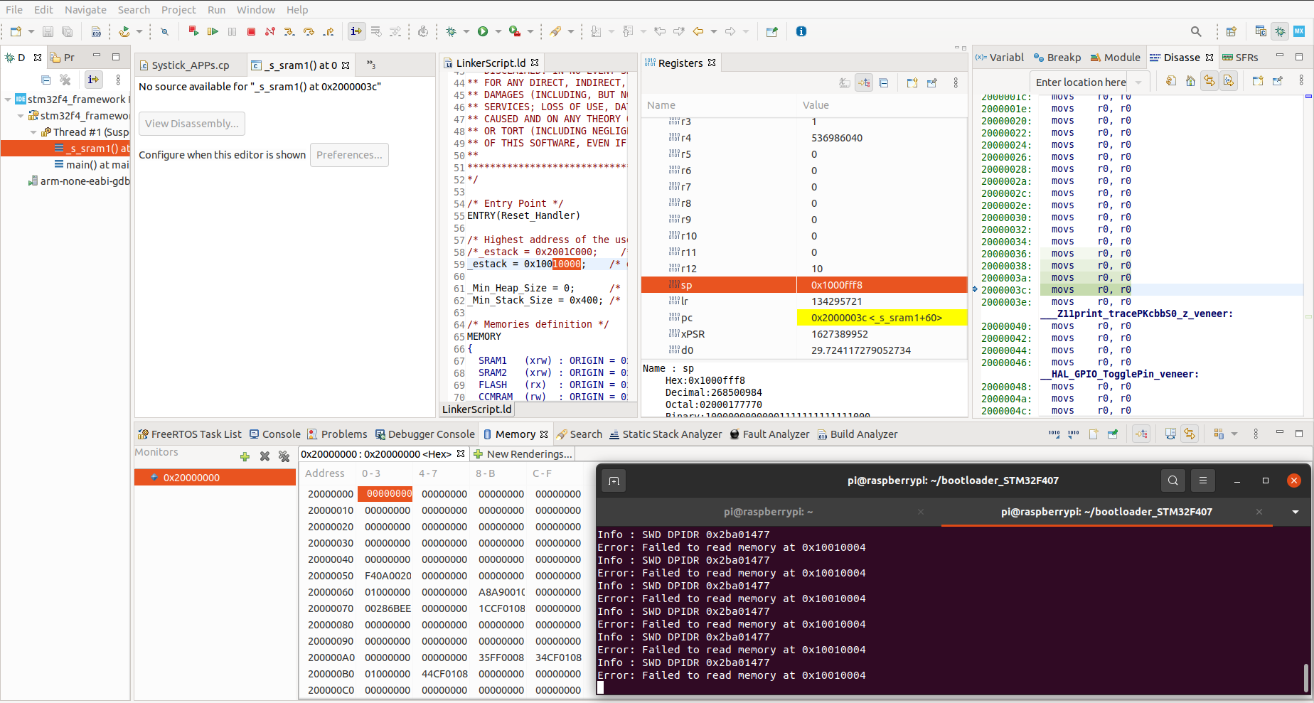 我试图从RAM中执行一段简单的代码,但由于某种原因,程序会停止/抛出严重错误。我使用CCMRAM作为数据、堆和堆栈,而SRAM1用于执行代码。这是我的链接脚本和启动文件。
