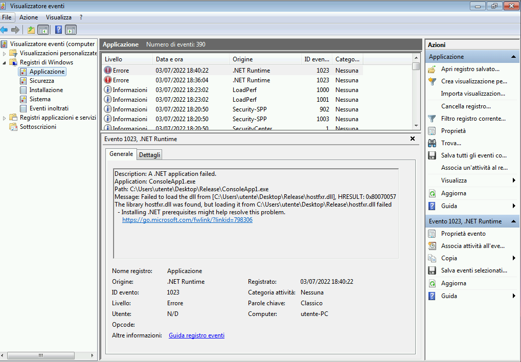 在Windows11、Windows10和Windows8.1上运行应用程序没有任何问题,但在Windows7上,我有一个.NET运行时ID 1023错误,如图像中所示。