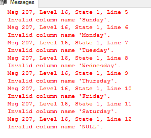 WHEN DATEPART(''dw'','+@ColName+') = 1 THEN ''Sunday''