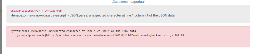jsonrpc/promise</<@https://erp-test-server.ta-da.ua/web/assets/2407-3bfcb27/web.assets_backend.min.js:593:55我试图在资产或js模块中找到一些东西,但失败了。同样,当我尝试更新其他基本模块(如"mail“或"web”)时,也会出现此错误。