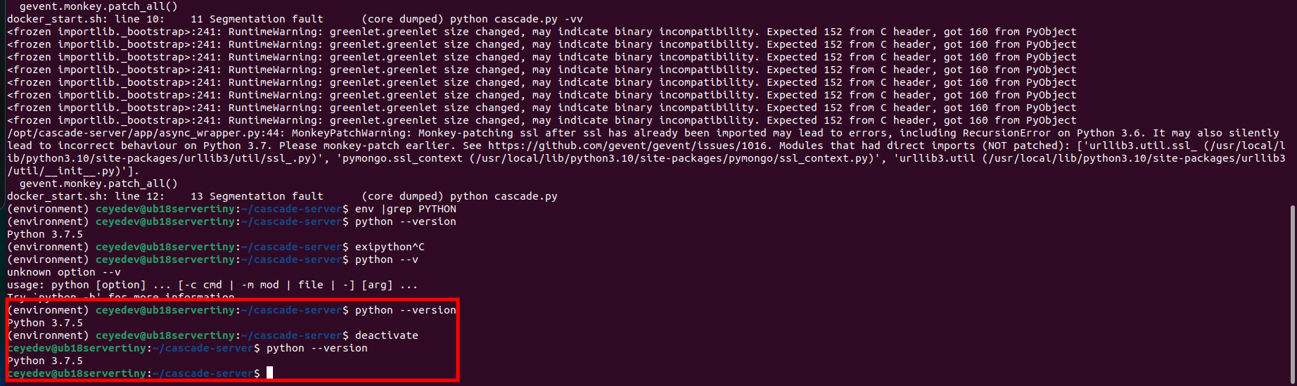 docker_start.sh: line 10: 18 Segmentation fault (core dumped) python cascade.py -vvpython版本
